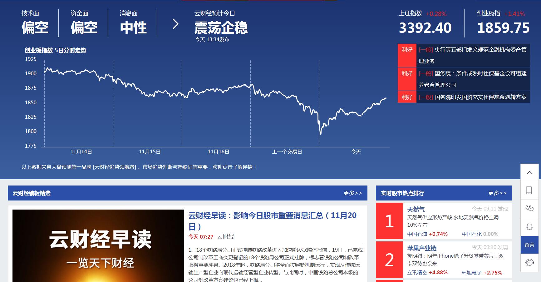 今日沪深两市股指集体低开,沪指下跌近1%失守60日线,中小板指和创业板指盘中拉升翻红。截至午间收盘,沪指下跌0.81%,报收3355.58点;深成指下跌0.25%,报收11264.36点;创业板上涨0.09%,报收1835.49点。好在午后大盘回升,截至收盘,沪指上涨0.28%,报收3392.40点;深成指上涨1.28%,报收11437.55点;创业板上涨1.41%,报收1859.75点。