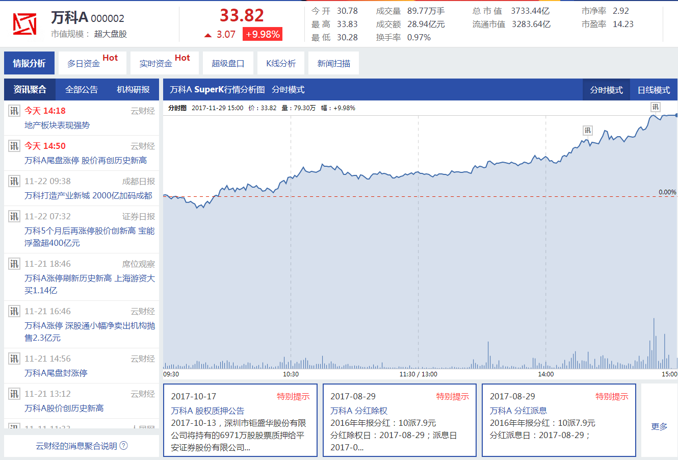 沪深股指探底回升 万科A尾盘涨停股价创新高